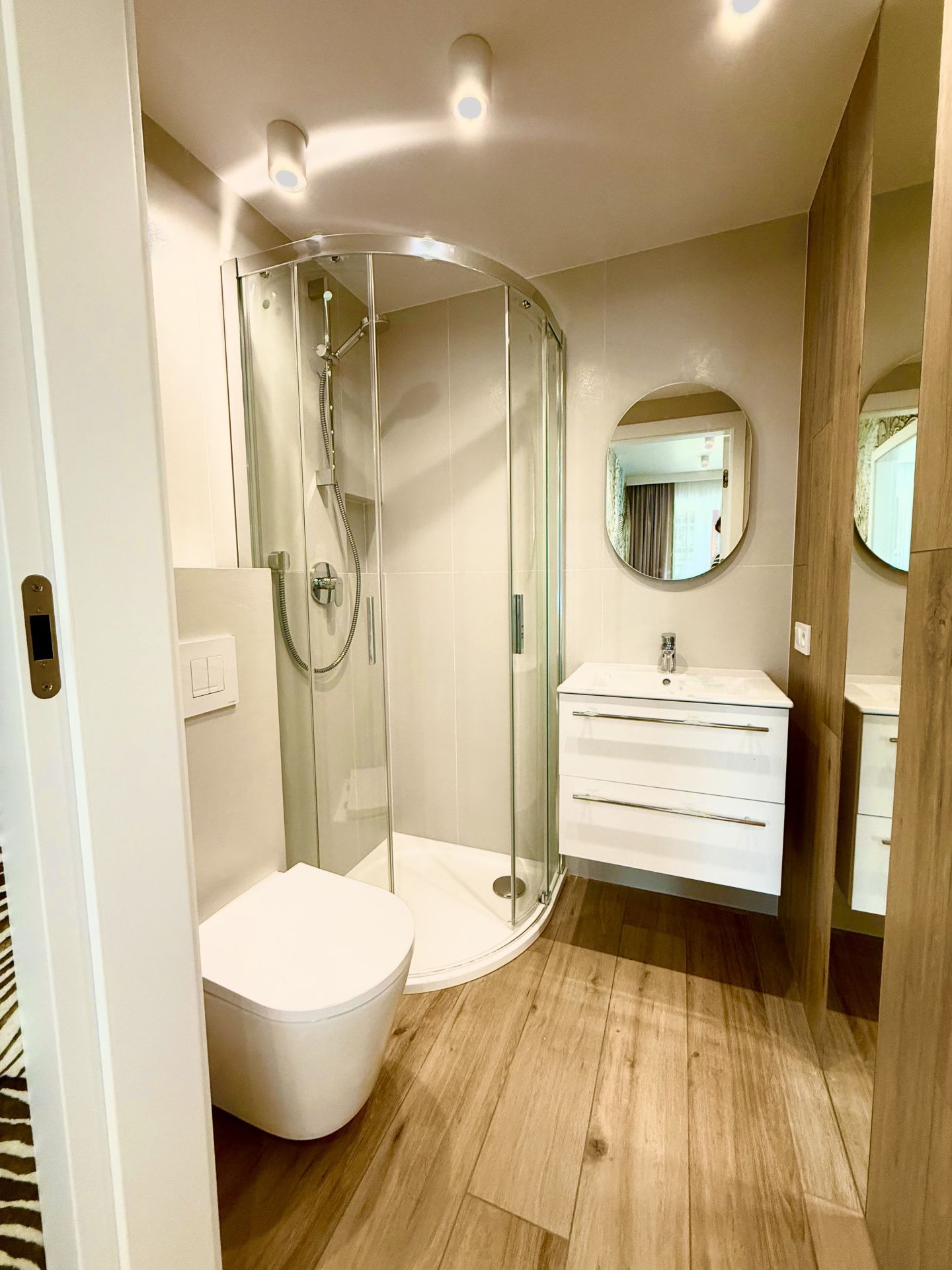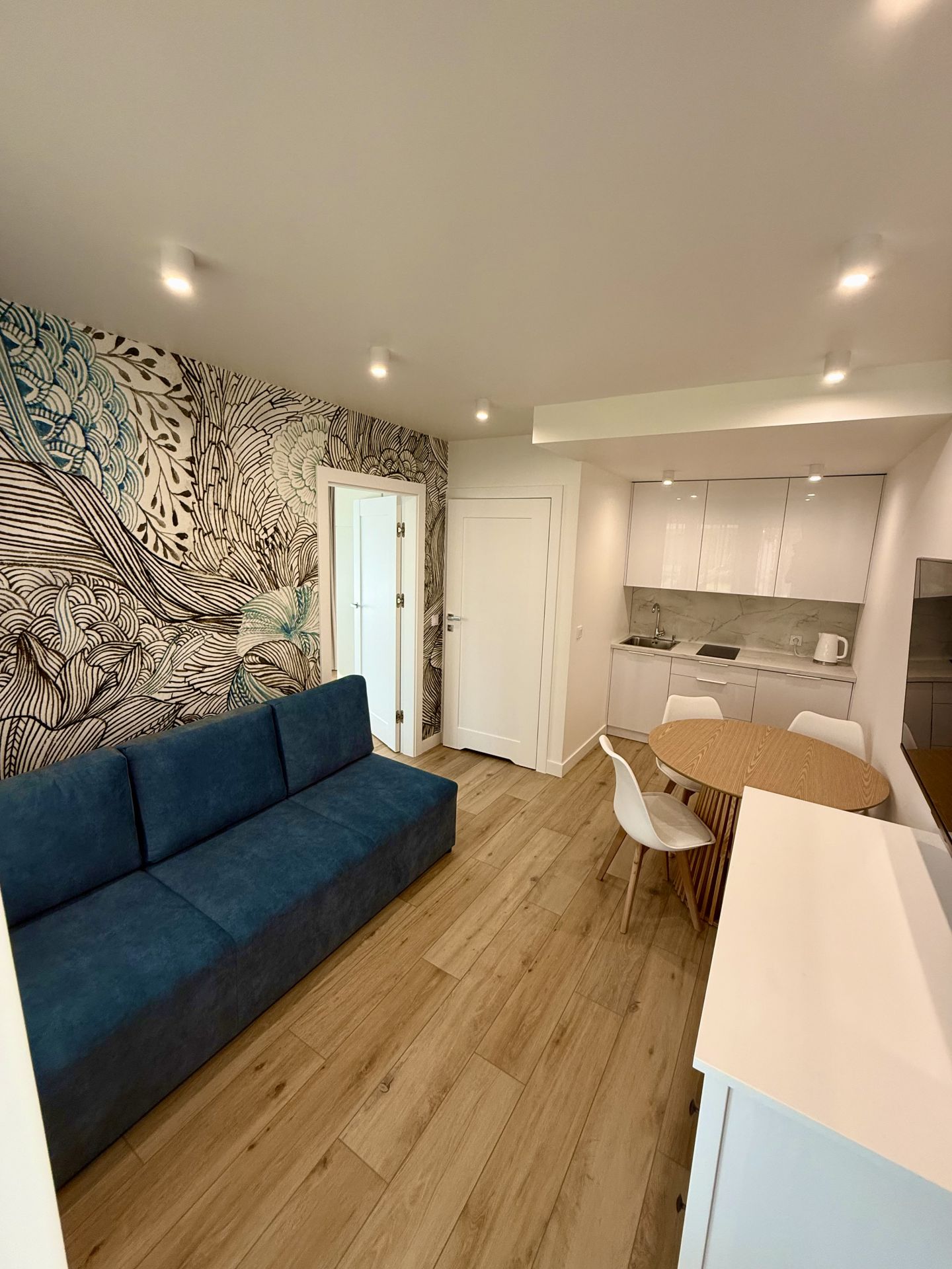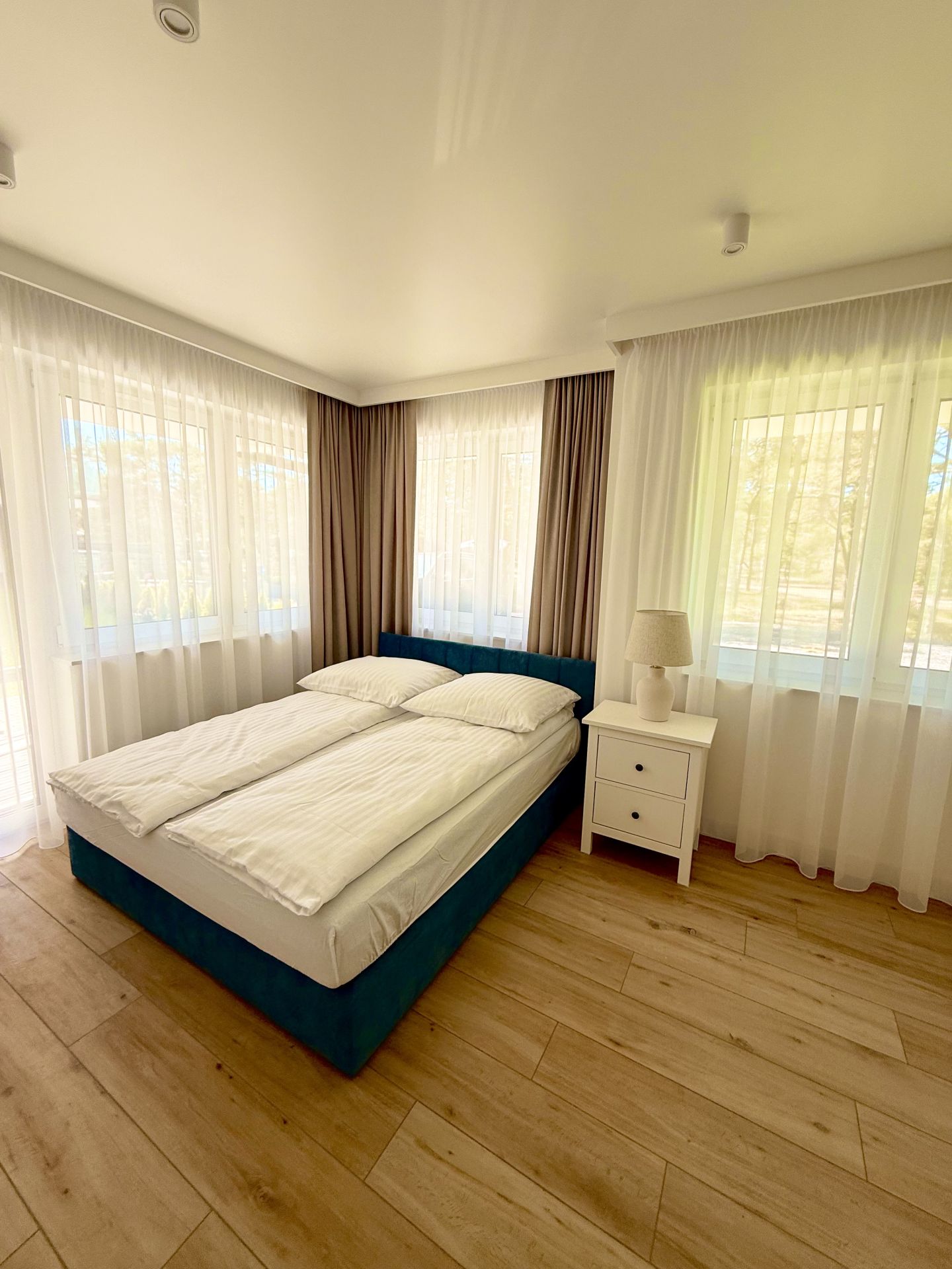 Apartament classic z jedną sypialnią z łóżkiem typu king- size z kuchnią i łazienką usytuowany na parterze z własnym wejściem od dziedzińca o powierzchni 28m2