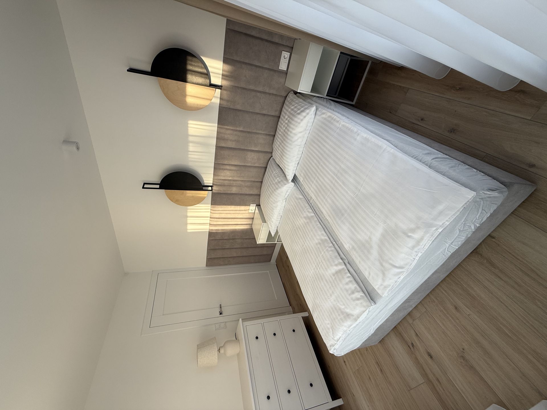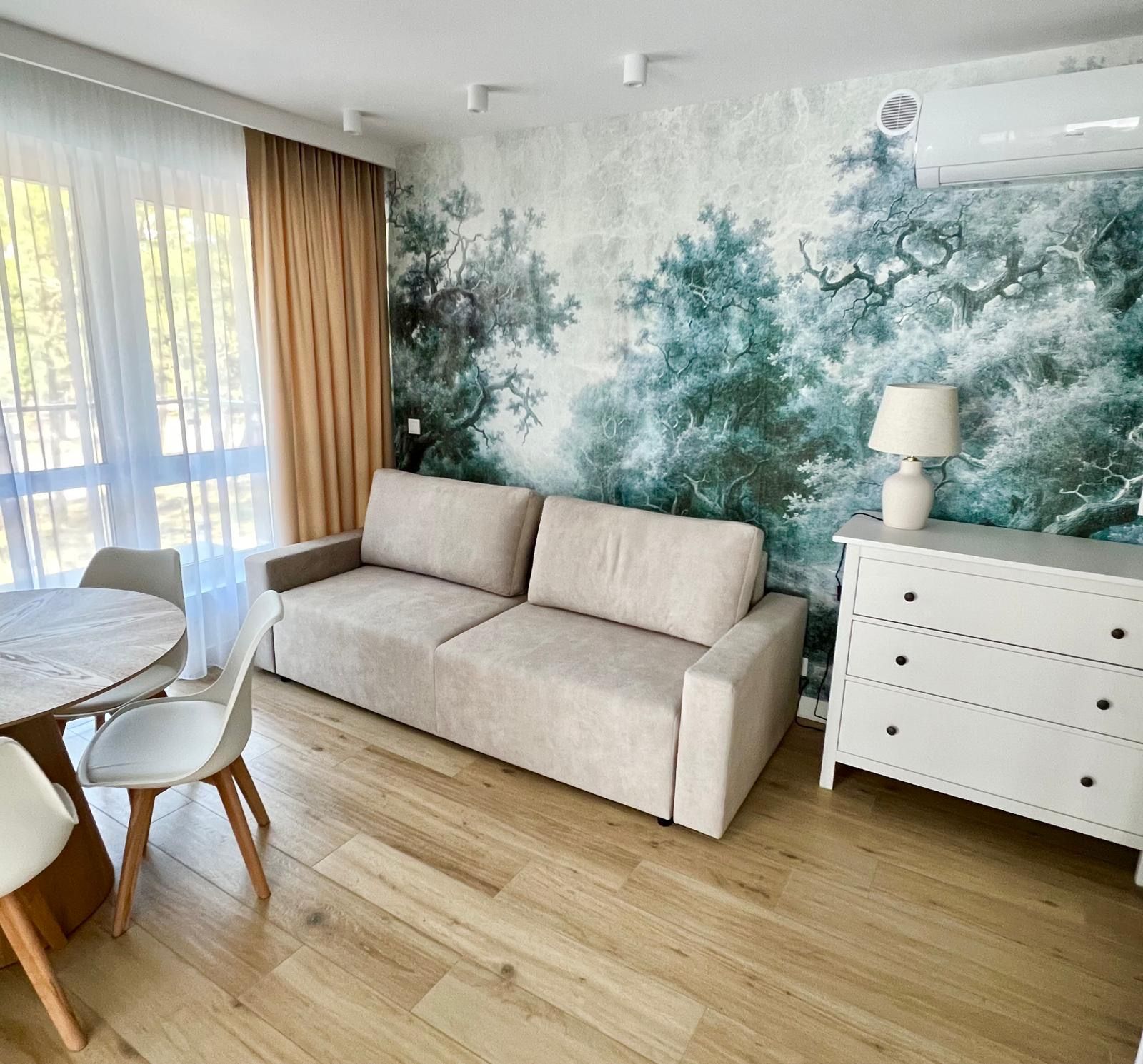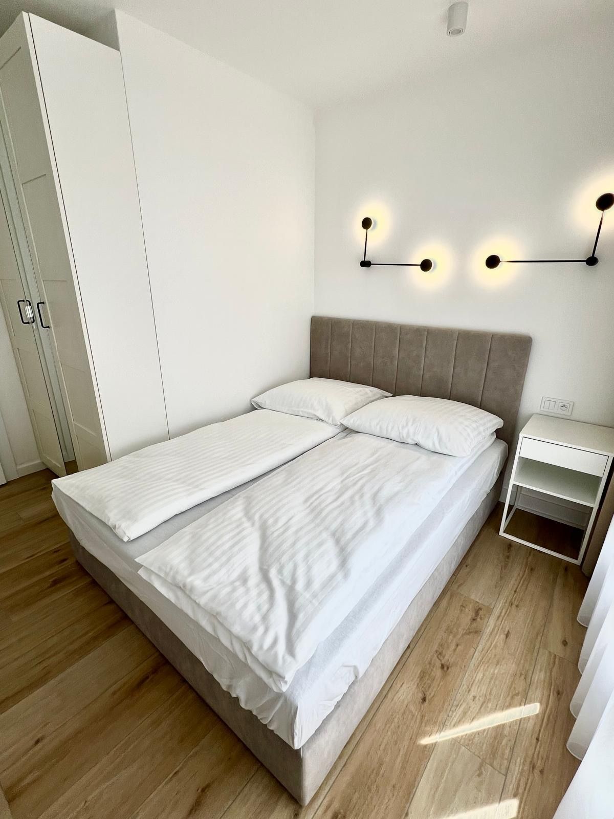 Apartament 5 osobowy trzypokojowy z dwoma sypialniami z łóżkami typu King-size , kuchnią i łazienką o powierzchni 38m2 usytuowany na pierwszym piętrze z dużym balkonem z widokiem na las , w budynku znajduje się winda.